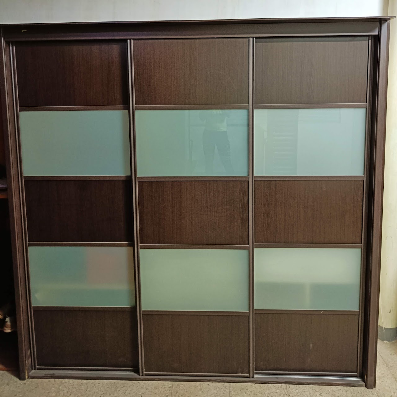 Armario de tres cuerpos, totalmente equipado con dos cajoneras, baldas, maletero y barras para colgar.