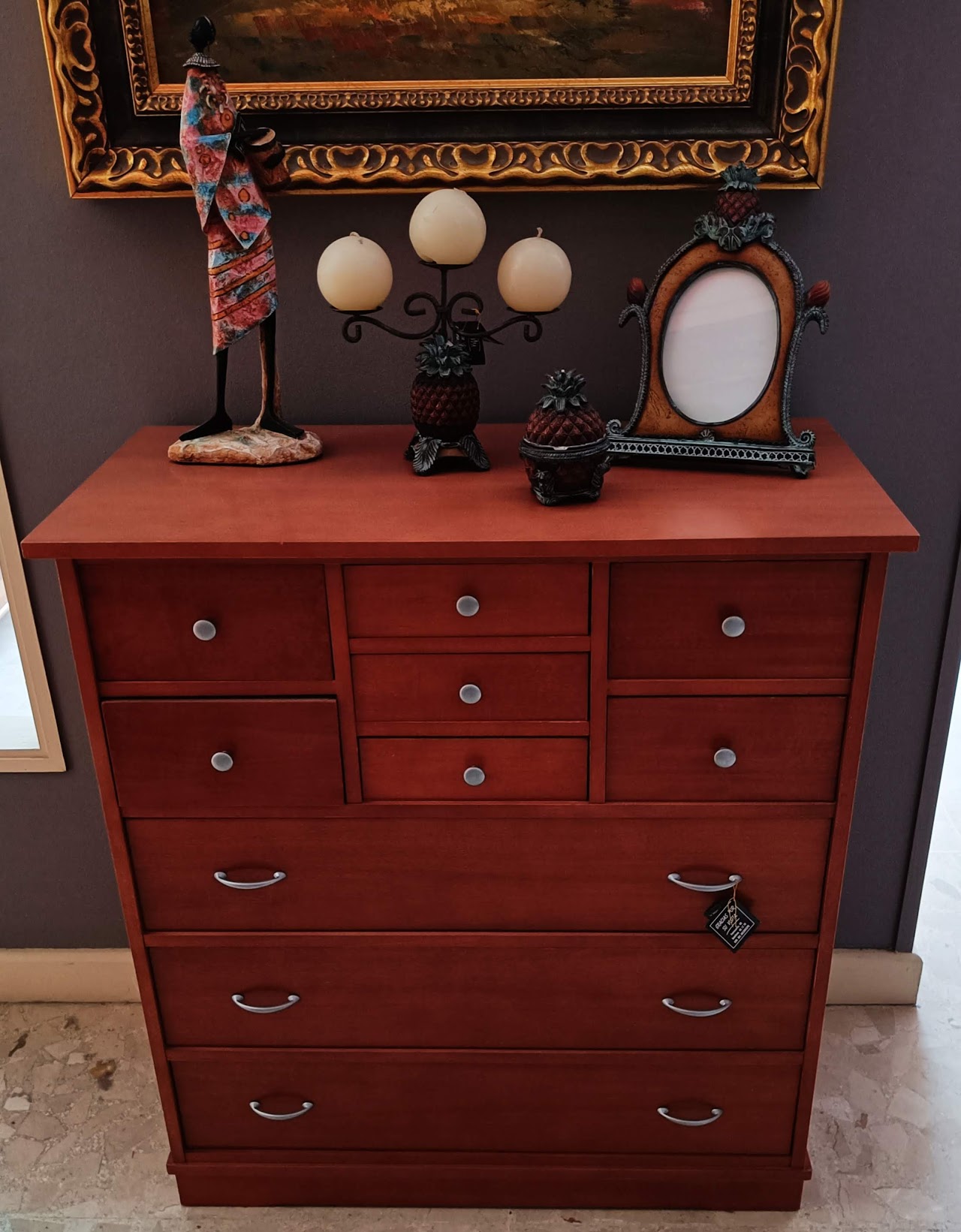 Cómoda para su dormitorio de melamina en tono cerezo. 60 de ancho, 80 de alto y 30 de fondo.