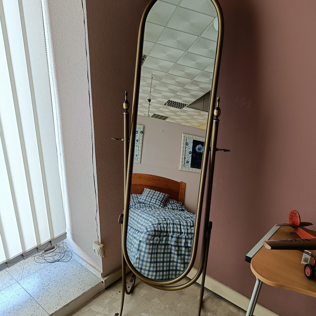 Espejo de pie dorado para el vestidor, dormitorio o aseo.