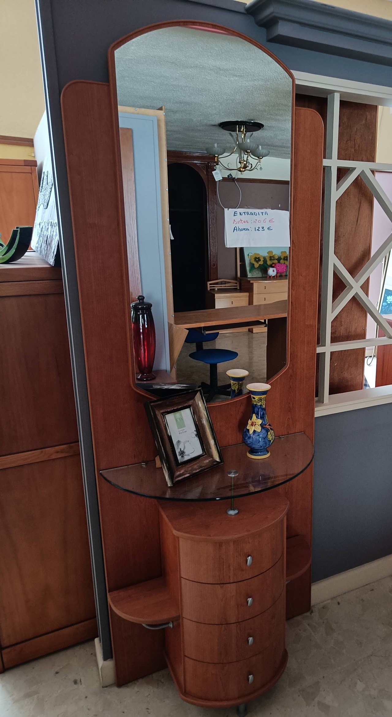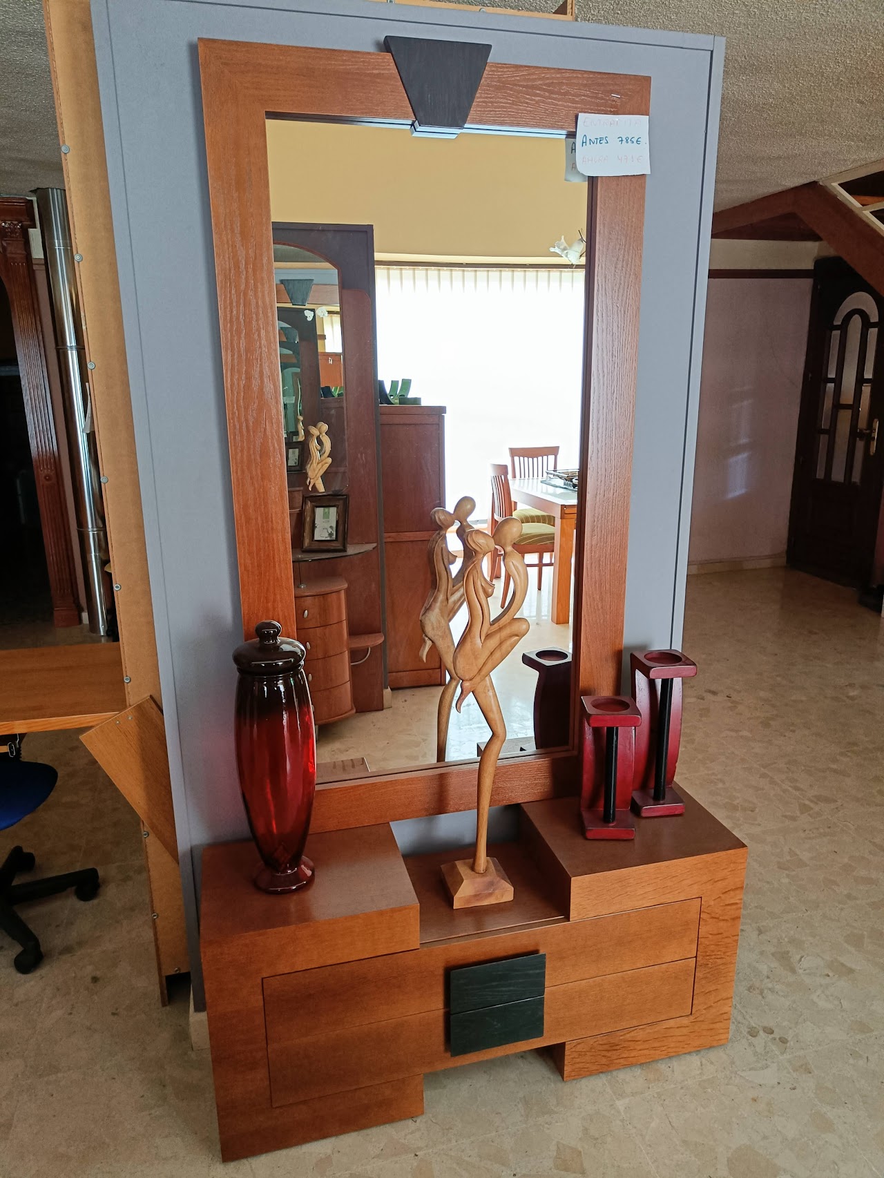 Entradita de madera, diseño moderno con espejo alto y dos cajones en bitono.